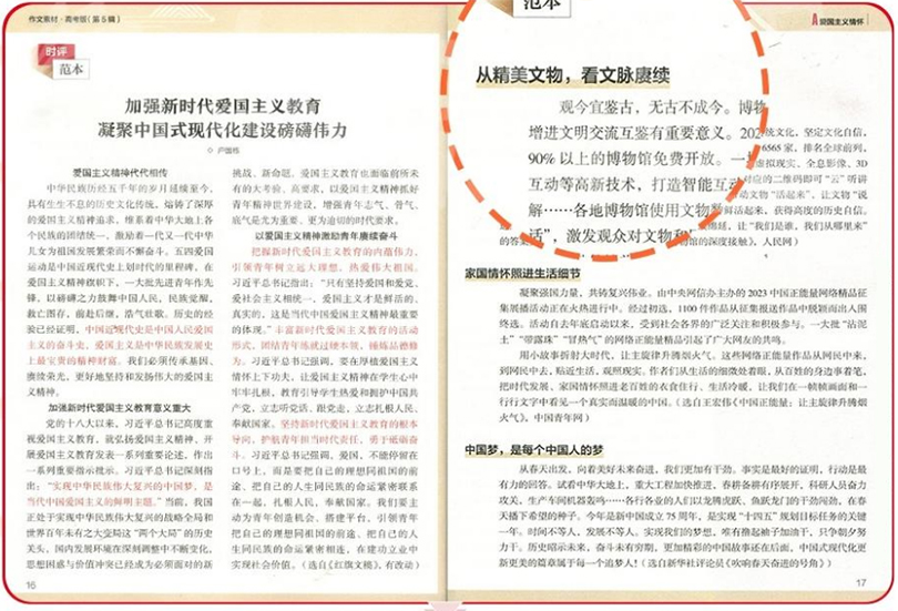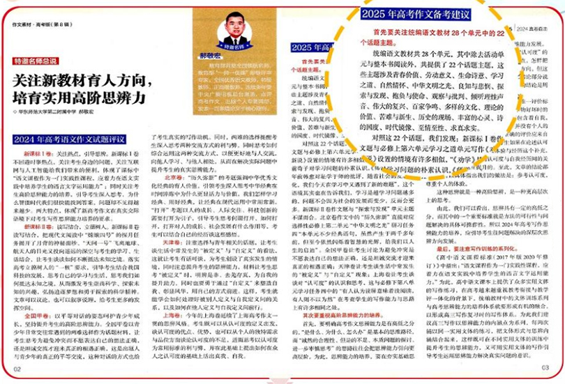 除了作文示范和思考题目,杂志还会提供丰富多样的写作素材。我们会收集和整理各类优质素材,如经典名著、历史故事、科学知识、社会现象等,供学生进行选择和引用。这些素材既可以拓宽学生的知识面,又可以提供丰富的思考角度和写作内容,帮助学生丰富作文内容,提升作文的深度和质量。